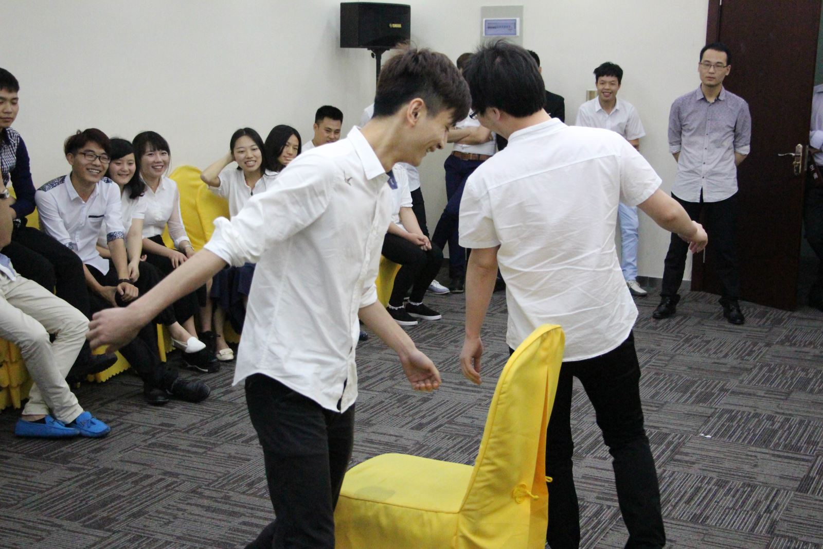 重大節(jié)日慶?;顒?,公司組織員工進(jìn)行慶?;顒?,大家一起做游戲,緩解了工作的疲勞,每個人都能參與到活動中來,幾人一組,男女搭配,大家玩的開心,比平時更加注重團結(jié)友善,開心的玩在一起。